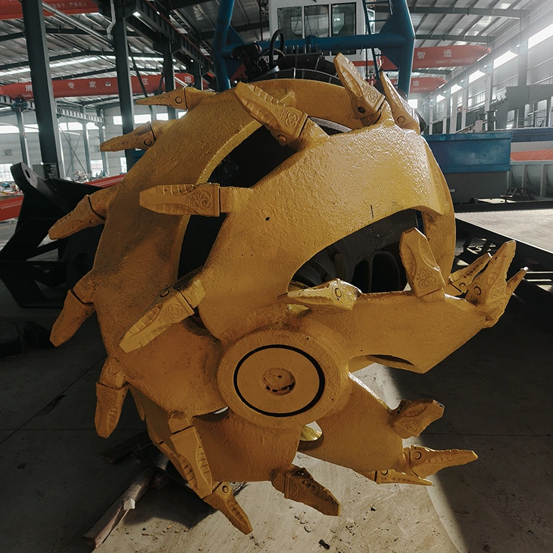 Útrist mei in hydraulysk oandreaune cutter holle oan de foarkant, it draait te snijen en brekke up kompakte goud-bearing sân lagen, oanpakken fan de lege effisjinsje fan tradisjonele gouden baggerskippen yn hurde rivierbed omstannichheden. Bygelyks, yn rivieren mei ferhurde sânlagen kin de snijkop ertsmaterialen ferpletterje yn in pompbere steat.